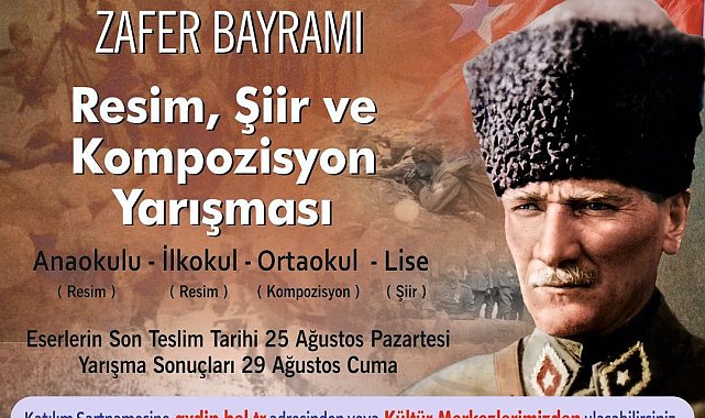 Aydın Büyükşehir Belediyesi, 30 Ağustos Zafer Bayramı nedeniyle 'Zafer Bayramı' temalı ödüllü resim, şiir ve kompozisyon yarışması düzenleyecek.