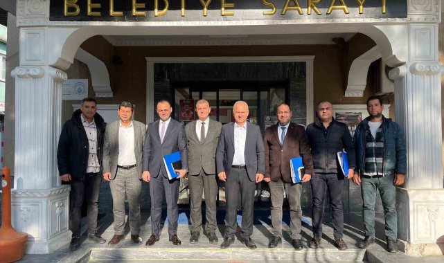 Aydın Büyükşehir Belediyesi Su ve Kanalizasyon İdaresi (ASKİ) Genel Müdürü Hakan Olkaç, Genel Sekreter Yardımcıları Zafer Uçar ve Burak Örnek ile Fen İşleri Dairesi Başkanı Ufuk Serdar Özmen, Çine Belediye Başkanı Mehmet Kıvrak'ı ziyaret ederek Aydın Büyükşehir Belediye Başkanı Özlem Çerçioğlu tarafından Çine ilçesine gerçekleştirilen yatırım ve çalışmaları değerlendirdi.