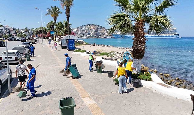 Kırsal mahallelerden kent merkezine kadar Aydın'ın dört bir yanına hizmet ulaştırmak için çalışmalarını mesai mefhumu gözetmeksizin sürdüren Aydın Büyükşehir Belediyesi; Park ve Bahçeler, Çevre Koruma ve Kontrol ile Ulaşım Dairesi Başkanlıklarına bağlı ekipler bu sefer ise Kuşadası'nda kapsamlı bir çalışma gerçekleştirdi.