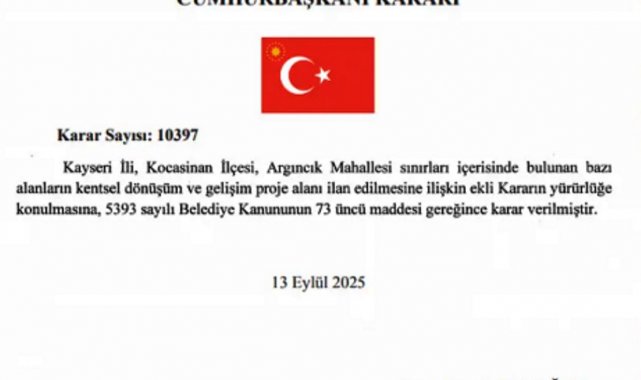 "Bugün, uzun süredir yürüttüğümüz çalışmalar sonucunda sizlere önemli bir haber vermek için buradayız. Cumhurbaşkanımız Sayın Recep Tayyip Erdoğan'ın imzasıyla, Argıncık Mahallesi sınırları içerisindeki bazı alanların 'Kentsel Dönüşüm ve Gelişim Proje Alanı' ilan edilmesinin mutluluğunu yaşıyoruz. Bu karar, çocuklarımız ve geleceğimiz için bir umut olacak; binlerce vatandaşımızın hayatına dokunacak çok önemli bir proje hayata geçirilecektir. Öncelikle, önümüzü açan ve çıkartmış olduğu kentsel dönüşüm kanunuyla bizlere hizmet etme imkânı sağlayan Sayın Cumhurbaşkanımız Recep Tayyip Erdoğan'a şükranlarımızı sunuyorum. Bu kararın alınmasında emeği geçen Çevre, Şehircilik ve İklim Değişikliği Bakanımız Sayın Murat Kurum'a ve AK Parti Genel Başkan Vekilimiz Sayın Mustafa Elitaş'a teşekkür ediyorum. Argıncık'ı tanımayan yoktur; fakat biz, taşını da sokağını da bilenler olarak Argıncık için gece gündüz çalışıyoruz. İnşallah bu güzel haberle çok daha mutlu olacağız. Şehrimizin geleceğini şekillendirecek bir projeye imza atıyoruz. 40 yılı aşkın süredir beklenen bu adımla, şehrimize yakışır bir projeyi hayata geçireceğiz. Argıncık'ı anlamak için sokaklara bakmak yeterlidir; hem deprem riski hem de eski yapıların varlığı ortadadır. Biz bu dönüşümü anlatmak için defalarca vatandaşlarımızın kapısını çaldık. Ancak burada yapacağımız iş yalnızca eski binaları yıkıp modern binalar yapmak değildir. Çünkü kentsel dönüşüm, sadece bir inşaat faaliyeti değil; aynı zamanda sosyal bir dönüşümdür. Bu projede parklar, yeşil alanlar, sosyal donatılar ve modern teknolojiyle donatılmış yapılar yer alacak. En önemlisi ise çevre şartlarına uygun, şehrimize yakışır bir Argıncık inşa edilecektir. Kayseri tarihinin en büyük kentsel dönüşüm projesini hayata geçireceğiz."
