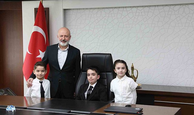 Mehmet Tarman Ortaokulu 6. sınıf öğrencisi Eymen Karakaş, Hacı Ömer Ayten Tepecik İlkokulu 2. sınıf öğrencisi Mina Karakaş ile anasınıfı öğrencisi Göktuğ Şimşek'i misafir eden Başkan Çolakbayrakdar, onlarla tek tek ilgilendi. Öğrencilerle sohbet eden Başkan Çolakbayrakdar, makam koltuğunu Eymen Karakaş'a teslim etti. Başkanlık makamına oturan öğrenci Eymen Karakaş, Park ve Bahçeler Müdürlüğünü arayarak ilçeye yeni bir park yapılması talimatını verdi. Eymen Karakaş, mevcut 722 parkın sayısının 723'e çıkarılmasını isteyerek çevreye ve oyun alanlarına verdiği önemi ortaya koydu. Programın bir diğer minik konuğu olan anasınıfı öğrencisi Göktuğ Şimşek ise okuduğu İstiklal Marşı ile gururlandırdı.