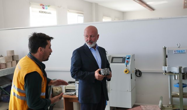 Tesis bünyesindeki laboratuvarda yapılan işlerin titizlikle takip edildiğine dikkat çeken Başkan Çolakbayrakdar, "Yaptığımız yol ve bulvar çalışmalarında alınan numuneleri hem gözlemsel olarak hem de teknik açıdan inceliyoruz. Basınç dayanımı, bitümün agregayla karışım kalitesi, içeriğindeki bitüm oranı gibi tüm teknik testler laboratuvar ortamında yapılıyor. Eğer numuneler kalite standartlarını karşılıyorsa onay veriyoruz; karşılamıyorsa asfaltın yeniden kazınması gerekiyor. Şükürler olsun ki bugüne kadar yaptığımız tüm üretimler gerekli standartları sağlamaktadır. Kalitemizi düzenli olarak test etmeye devam ediyoruz. Kilitli parkeler, bordürler ve betonlar dâhil tüm ürünler kendi laboratuvarımızda test edilerek onaylanmaktadır" diye konuştu.