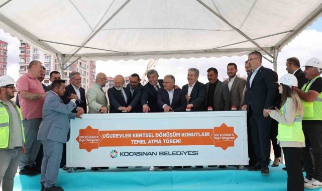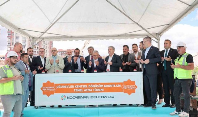 Konuşmaların ardından protokol üyeleri, dualar eşliğinde butona basarak Uğurevler Mahallesi Kentsel Dönüşüm Konutları'nın temelini attı.