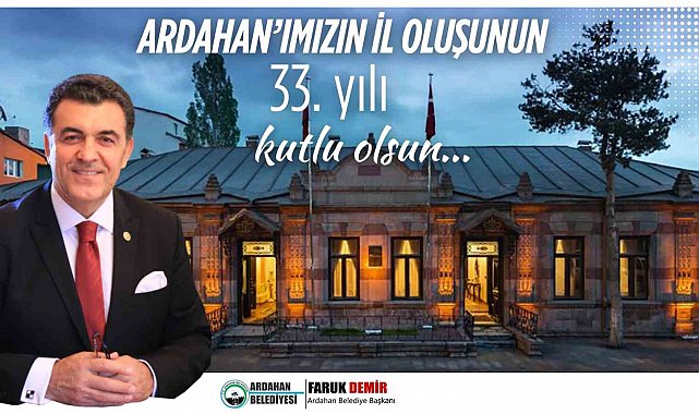 Ardahan Belediye Başkanı Faruk Demir, Serhat Şehri Ardahan'ın il oluşunun 33'üncü yıldönümü dolayısıyla bir kutlama mesajı yayınladı.