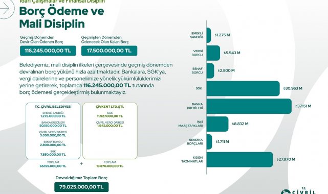 Çivril Belediye Başkanı Semih Dere, belediyeyi 116 milyon TL borçla devraldıklarını, bunun 98 milyon TL'sinin ödendiğini ve kalan borcun 17,5 milyon TL'ye düşürüldüğünü açıkladı. Ayrıca kullanılan 48 milyon TL'lik kredinin personel hakları ve hizmet araçları için harcandığını belirtti.