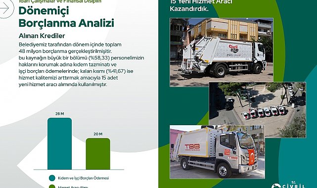 Başkan Dere, 2024-2025 döneminde belediye tarafından toplam 48 milyon TL kredi kullanıldığını ifade ederek, bu borçlanmanın detaylarını da paylaştı. Kullanılan kredinin yüzde 58,33'lük kısmının (28 milyon TL) personel haklarını korumak amacıyla kıdem tazminatları ve işçi alacaklarının ödenmesinde kullanıldığını belirtti. Kalan yüzde 41,67'lik bölümün ise (20 milyon TL) belediyenin hizmet kapasitesini artırmak amacıyla alınan 15 adet hizmet aracının finansmanında değerlendirildiğini söyledi.