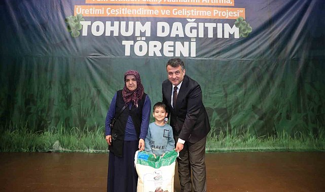 Samsun Büyükşehir Belediyesi tarafından "Yem Bitkileri Ekiliş Alanlarını Artırma, Üretimi Çeşitlendirme ve Geliştirme Projesi" kapsamında Vezirköprü'de çiftçiye tohum dağıtımı yapıldı. Törende, çiftçilere dağıtılmak üzere 2 bin 883 paket silajlık mısır tohumu, bin 734 paket yonca tohumu ve 287 paket çim tohumu gibi ürünler teslim edildi. Bu tohumlar, bölgedeki yem bitkisi üretimini artırmak ve kaba yem talebini karşılamak amacıyla kullanılacak.