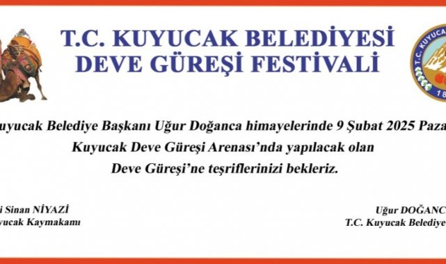 Kuyucak Belediyesi'nin katkılarıyla gerçekleştirilecek olan yılın büyük deve güreşi için geri sayım başlarken, Kuyucak Belediye Başkanı Uğur Doğanca, 9 Şubat Pazar günü yapılacak olan Deve Güreşi Festivali'ne tüm vatandaşları davet etti. Başkan doğanca: "Yılın en heyecanlı güreşlerinden biri olan Kuyucak Belediyesi Deve Güreşleri Festivali, Kuyucak Arenası'nda yapılacak. Belediyemizin katkılarıyla düzenlenecek olan Kuyucak Deve Güreşleri Festivali'ne Türkiye'nin 3 bölgesinin birbirinden ünlü pehlivan develeri katılacak. Kuyucak Deve Güreşi Arenası'nda 9 Şubat 2025 Pazar günü yapılacak olan ve pehlivan develerin kıran kırana mücadelesine sahne olacak güreşler için hazırlıklar da tamamlandı. 8 Şubat Cumartesi günü saat 13.00'te Kuyucak Belediyesi önünden kortej yürüyüşü ile şenliklerimizi başlatacağız. 9 Şubat Pazar günü de tüm halkımızı deve güreşi şenliklerimize bekliyoruz" dedi.
