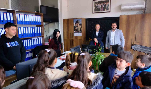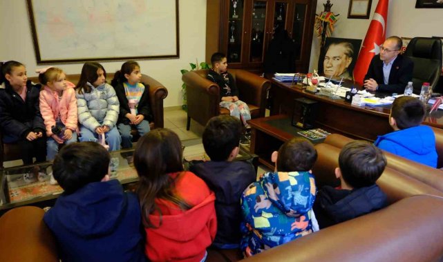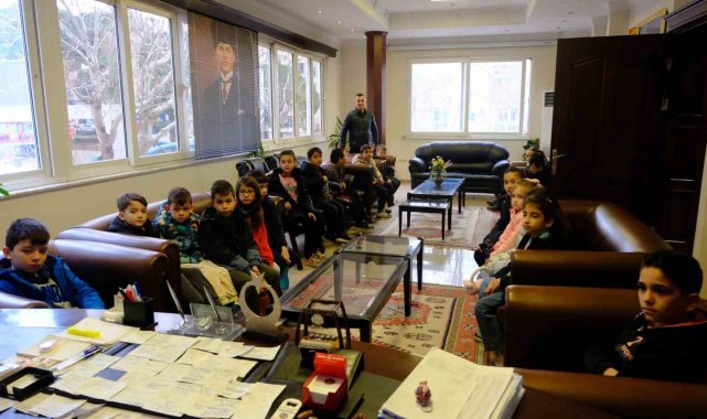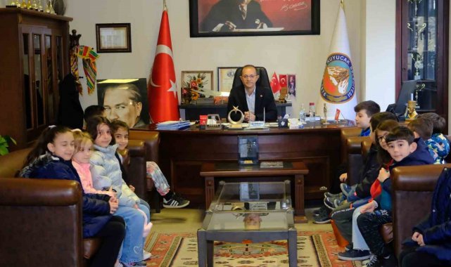 Kuyucak Belediye Başkanı Uğur Doğanca Kuyucak Ertuğrul Gazi İlkokulu öğrencilerini ağırlarken, yerel yönetimler konusunu işleyen öğrenciler belediyeyi ziyaret ederek çalışmaları yerinde görme fırsatı buldu.