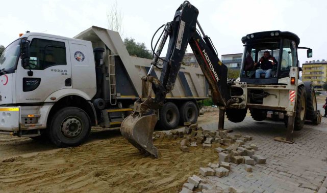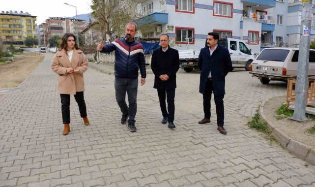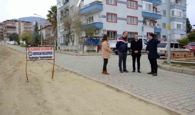 Kuyucak Belediye Başkanı Uğur Doğanca ilçede devam eden parke döşeme çalışmalarını yerinde inceledi.