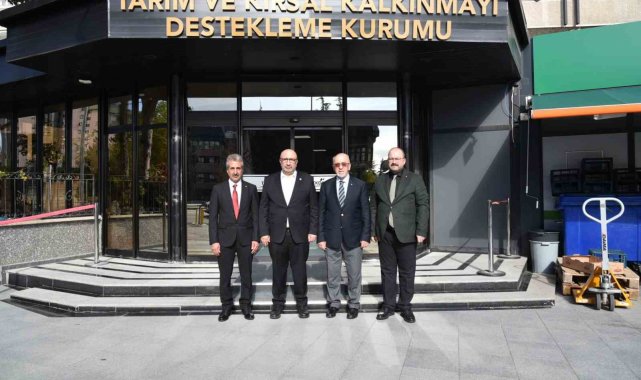Elazığ Ticaret Borsası Başkanı Mehmet Ali Dumandağ, AK Parti Elazığ Milletvekili Ejder Açıkkapı, Meclis Başkanı Aydın Torgut ve Genel Sekreter Murat Çiçek ile birlikte Tarım ve Kırsal Kalkınmayı Destekleme Kurumu (TKDK) Başkanı Ahmet Antalyalı'yı makamında ziyaret etti. Elazığ Besi Organize Sanayi Bölgesi'nde faaliyet gösterecek yatırımcıların TKDK desteklerinden etkin bir şekilde yararlanabilmesi amacıyla planlanan projelerin görüşüldüğü ziyarette ayrıca TKDK desteklerinin kentteki üretim, istihdam ve ekonomik kalkınma süreçlerine katkı sunması adına karşılıklı istişarelerde bulunuldu. Ziyarette ayrıca Elazığ'ın tarım ve hayvancılık potansiyelinin geliştirilmesi, kırsal kalkınma desteklerinin üreticilere daha etkin ulaştırılması ve yatırım alanlarının çeşitlendirilmesi konuları detaylı şekilde ele alındı.