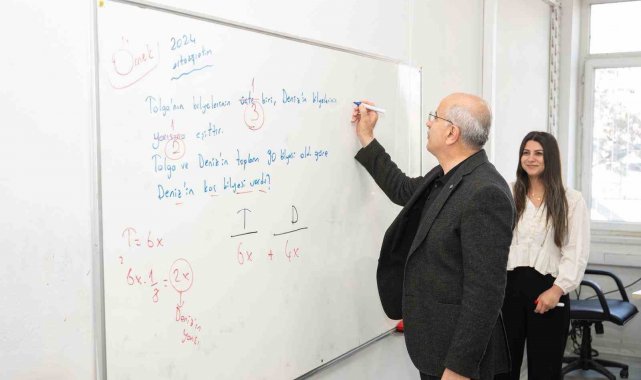 Matematik dersine kursiyerlerle birlikte katılan Başkan Er, ayrıca kursiyerlerle birlikte tahtada denklem sorusunu da çözdü.