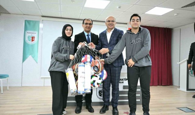 Büyükşehir Belediye Başkanı Sami Er, ziyareti kapsamında okula spor malzemesi desteğinde de bulundu.