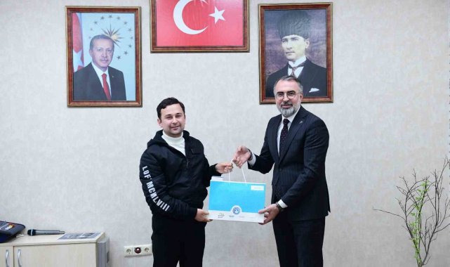 Kestel Belediye Başkanı Ferhat Erol'a eğitime katkılarından dolayı teşekkürlerini ileten İdeal Aydın,