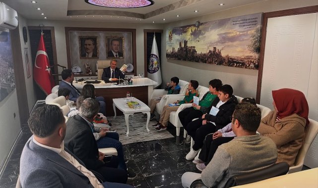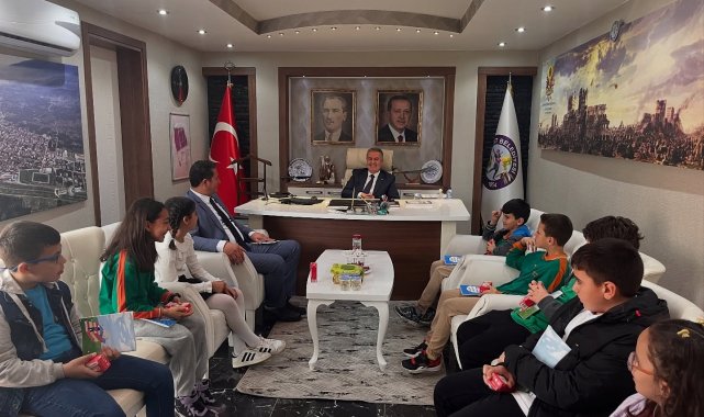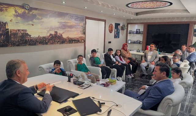Aydın'ın Buharkent ilçesinde Belediye Başkanı Mehmet Erol, 'Küçük Yazarlar' projesi kapsamında dereceye giren ilkokul öğrencilerini ağırladı.