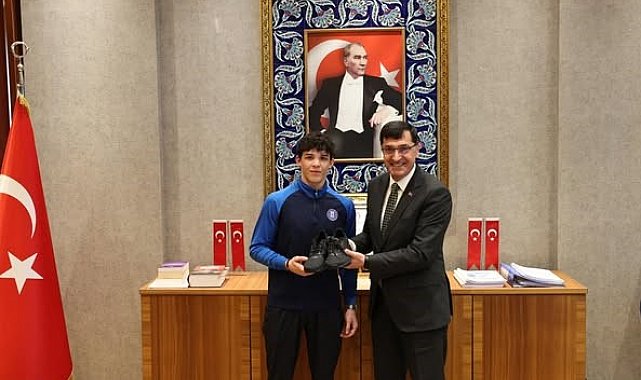 Kütahya Belediye Başkanı Eyüp Kahveci, Türkiye genelinde düzenlenen şampiyonada birincilik elde eden Kütahya Belediyespor'un genç güreşçisi Said Ada'yı tebrik etti.