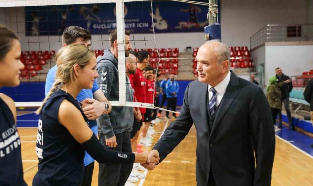 Başkan Faruk Özlü'den voleybolculara baklava ikramı