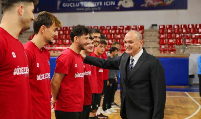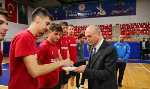 Düzce Belediye Başkanı Dr. Faruk Özlü, Düzce Belediyesi Spor Akademisi voleybol takımlarının antrenmanına katılarak, baklava ikram etti. Erkek voleybolcuları ilk galibiyetleri için tebrik eden Özlü, hafta sonu sahaya çıkacak kadın voleybolculara da başarılar diledi.