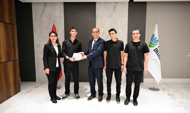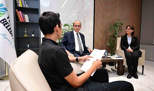 Kernek Anadolu Lisesi 10'uncu Sınıf öğrencileri Muhammed Ümeyr Akkaya, Semih Keten ve Umut Avcu, Türk Dili ve Edebiyatı Öğretmeni Arzu Kirnik eşliğinde gerçekleştirdikleri ziyarette, okulun haber sitesi için Başkan Geçit'le röportaj yaptı.