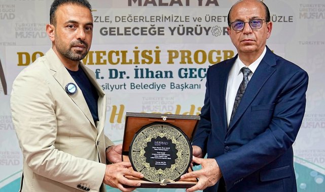 Toplantı sonunda MÜSİAD Malatya Şube Başkanı Yunus Akçin, katkılarından dolayı Yeşilyurt Belediye Başkanı Prof. Dr. İlhan Geçit'e teşekkür plaketi takdim etti.