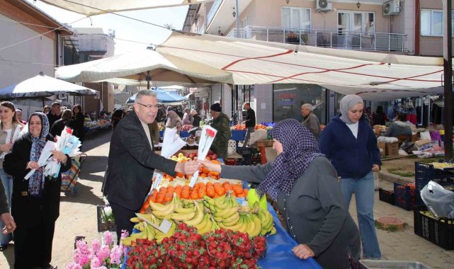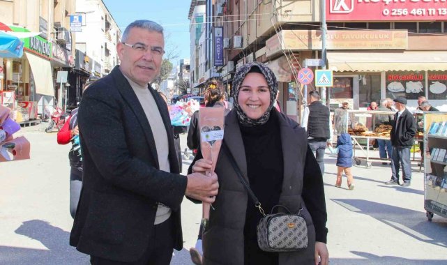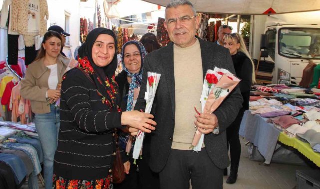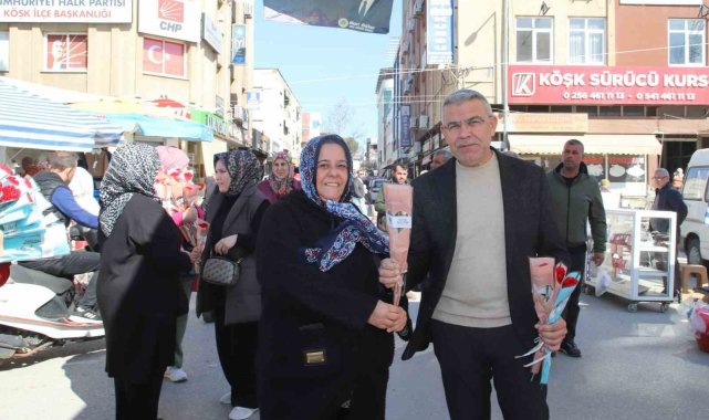 Köşk Belediye Başkanı Nuri Güler, ilçe pazarında kadınlara çiçek vererek 8 Mart KAdınlar Günü'nü kutladı.