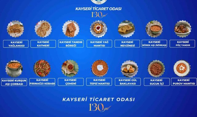 "TOBB'a bağlı tüm oda/borsalarımız tescil ettirdikleri coğrafi işaretli ürünlerini bu fuarda açtıkları stantlarla tanıtıyor. Kayseri Ticaret Odası olarak, 17 coğrafi işaretli tescilli ürünümüz başta olmak üzere şehrimizin tüm marka değerlerini ön plana çıkaracağız. Standımızda dünyaca ünlü pastırmamız, sucuğumuz ve mantımızın yanı sıra; Kayseri'mizin katmeri, yağlaması, tandır böreği, kurşun aşı çorbası, nevzinesi, gül baklavası, tepsi mantısı, börek aşı çorbası, yağ mantısı, pöç kebabı, purov mantısı, çemen, sucuk içi ve tepsi mantımızı tanıtacağız."