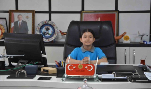 Başkan Erkan Kara, 23 Nisan Ulusal Egemenlik ve Çocuk Bayramı dolayısıyla Fatih Ortaokulu 5. sınıf öğrencisi Ayşe Akkaya ve Ziya Gökalp Nurettin Kelem Ortaokulu 5. sınıf öğrencisi Gülhizar Durak'a sırayla temsili olarak makamını devretti.