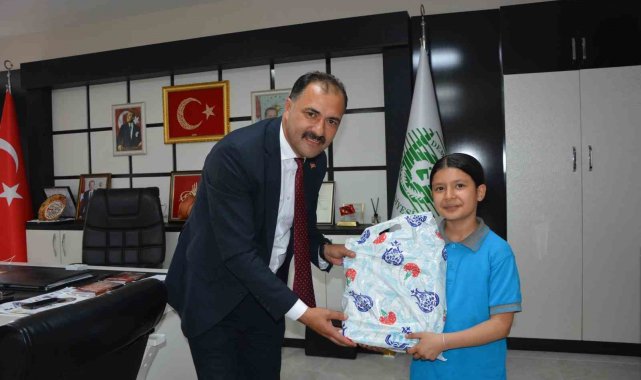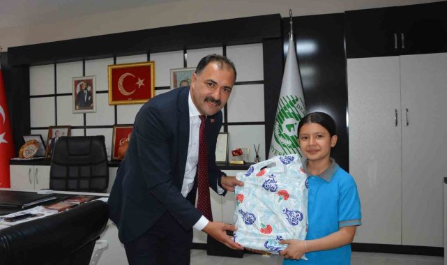 Fatih Ortaokulu 5. sınıf öğrencisi Ayşe Akkaya, Ziya Gökalp Nurettin Kelem Ortaokulu 5. sınıf öğrencisi Gülhizar Durak, İlçe Milli Eğitim Müdürü Bilal Çetinkaya, Fatih Ortaokulu Müdürü Öznur Armutçu ve Ziya Gökalp Nurettin Kelem Ortaokulu Müdürü İsmail Çetinkaya, Belediye Başkanı Erkan Kara'yı makamında ziyaret etti.