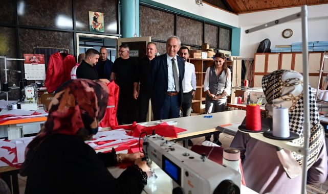 Kepez Belediye Başkanı Mesut Kocagöz, kadın emeğiyle büyüyen ve belediye bütçesine önemli katkılar sunan tekstil atölyesini ziyaret etti. Atölyede üretim yapan kadınlara kolaylıklar diledi. Onlarla sohbet ederek hal hatır sordu. Arazide görev yapan personeli yağışlardan korumak için hazırlanan yağmurlukları inceleyen Kocagöz, yağmurluğu üzerine giyerek ürünü test etti. Başkan Kocagöz, "Arkadaşlarımızın emeği. Hepsinin ellerine sağlık. Biz onlarla gurur duyuyoruz" dedi.