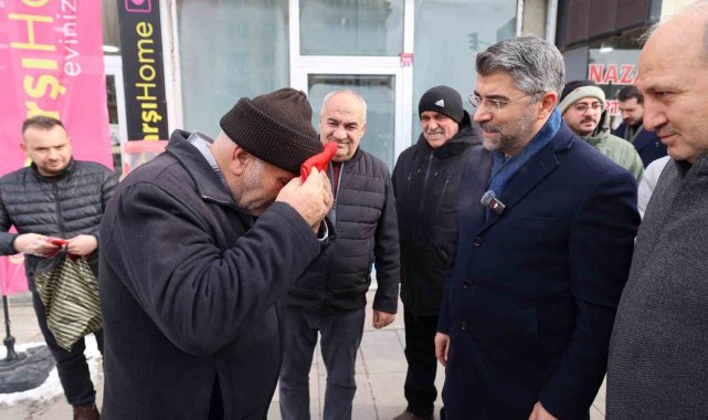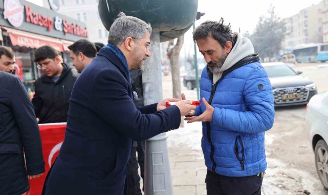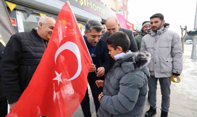 AK Parti Erzurum İl Başkanı Av. İbrahim Küçükoğlu, Aziziye ilçesinde esnaf ve vatandaşlara bayrak dağıttı.