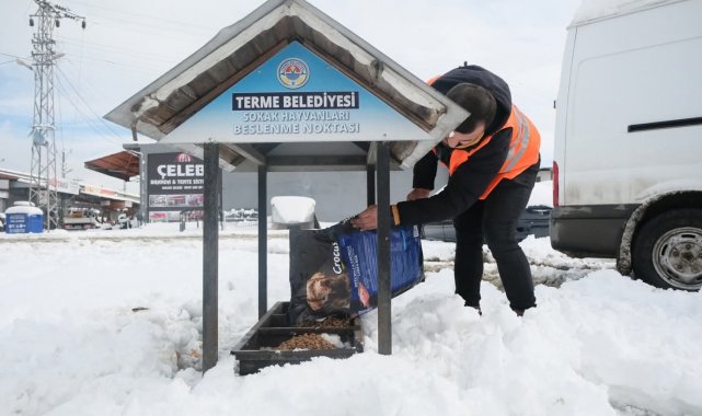 Terme Belediyesi ekipleri ilçede yoğun kar yağışının ardından havaların aşırı soğuması nedeniyle yiyecek sıkıntısı çeken sokak hayvanlarını adım adım takip ederek bulundukları bölgede beslenmelerine yardımcı oluyor. Belediye Veteriner İşleri Müdürlüğü ekipleri tarafından ilçenin muhtelif mahallelerinde sokak hayvanlarına mama ve su bırakıldı. Şehri kaplayan kar yağışı ve soğuk hava nedeniyle yiyecek bulmakta zorlanan kuşlarla sokak hayvanları için yiyecek bırakma işleminin devam edeceğini belirten yetkililer, vatandaşların evlerde biriken küçük kırıntıları ve bir kap su ile birlikte müsait alanlara bırakmalarının uygun olacağını söylediler.