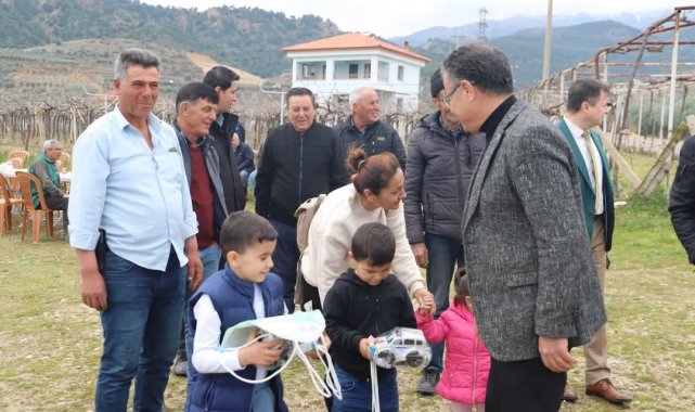 Belediye Başkanı Ahmet Öküzcüoğlu, mahalle muhtarına Türk bayrağı, yetişkinlere çakmak hediye ederken, çocuklara oyuncak ve boyama kitabı hediye etti.