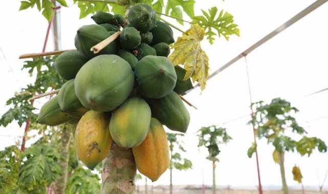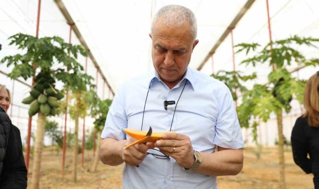 Alanya Belediye Başkanı Osman Tarık Özçelik, serada yetiştirilen ve hasat vermeye başlayan tropikal meyve ağaçlarını inceledi. Özellikle papaya, mango ve ejder meyvesi gibi egzotik türlerin üretimi hakkında bilgi alan Başkan Özçelik, papaya ağaçlarından toplanan meyveleri tadarak, yanında bulunan ekibe de ikram etti. Özçelik, "Bu sera, Alanya'nın tarımsal çeşitliliğini artırmak ve tropikal meyve üretimini tanıtmak için önemli bir adım. Hem yerel çiftçilerimize ilham oluyor hem de Alanya'nın tarımsal markalaşmasına katkı sağlıyor" dedi.