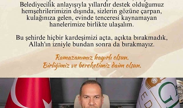 Niğde Belediye Başkanı Emrah Özdemir; yaklaşan Ramazan ayı öncesinde şehirdeki dayanışma ruhunu güçlendirmek adına tüm vatandaşlara, mahalle muhtarlarına ve Sivil Toplum Kuruluşlarına çağrıda bulundu. Başkan Özdemir; "Bizim ulaşamadığımız, gözden kaçan ihtiyaç sahiplerini bize bildirin, bu Ramazan'da kimseyi mahzun bırakmayalım" dedi.