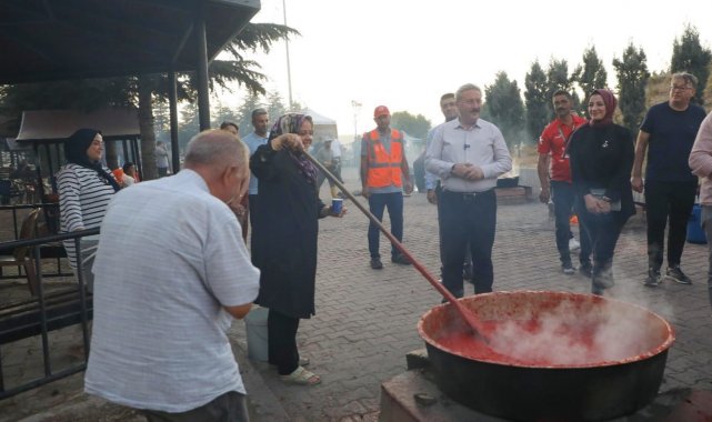 Melikgazi Belediye Başkanı Doç. Dr. Mustafa Palancıoğlu, Belsin Kocatepe Mahallesi'nde hizmet verdikleri salça kaynatma alanını ziyaret etti.