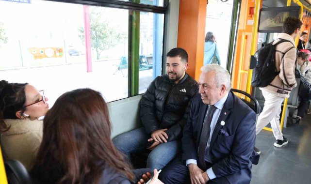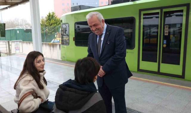 Üniversite durağından tekrar BursaRay'a binerek Nilüfer istasyonuna doğru yola çıkan Başkan Şadi Özdemir, yol boyunca vatandaşlarla sohbet etti.