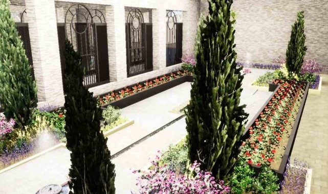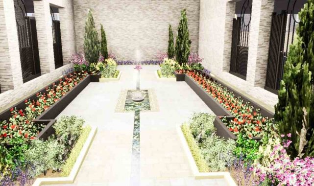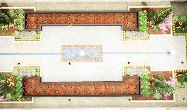 Millet Bahçesi'nin zemin katında planlanan bahçelerin tasarım aşamasında Zeugma Antik Kenti'nden çıkarılan mozaikler referans alındı. Dün Bahçesi tasarımında çarkıfelek ile çeşitli desenler işlenirken ortada ise süs havuzu bulunacak.