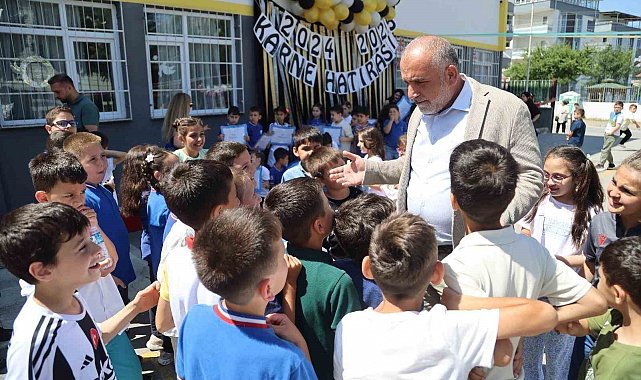 Samsun'un Canik Belediye Başkanı İbrahim Sandıkçı, Hasköy Cumhuriyet İlkokulu'nda karne sevinci yaşayan öğrencilerin mutluluğuna ortak oldu. Öğrenciler, karnelerini Başkan Sandıkçı'nın elinden alırken duygu dolu anlar yaşandı.