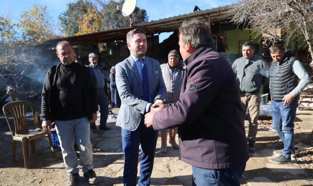 Başkan Tatık evleri yanan aileyi yalnız bırakmadı