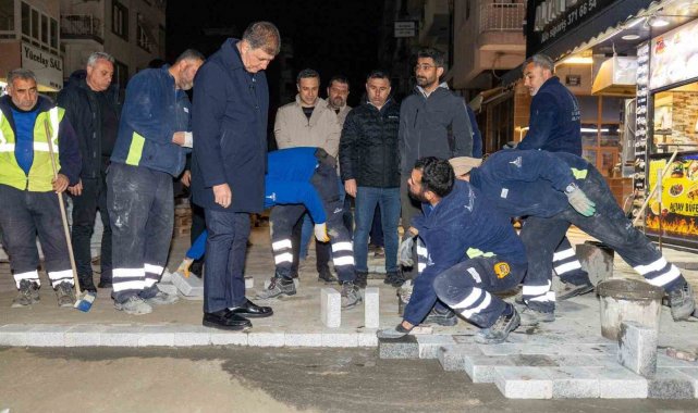 Başkan Tugay yol emekçileriyle gece mesaisinde buluştu