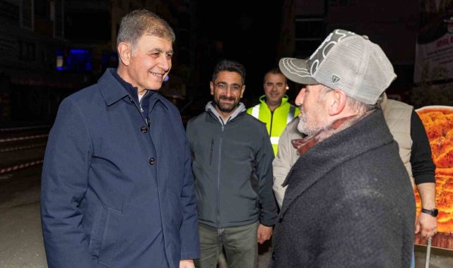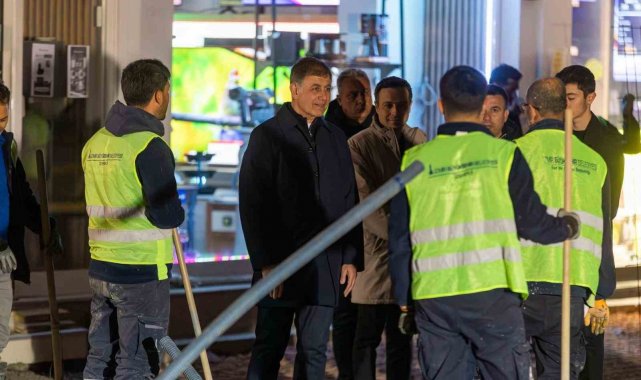 İzmir Büyükşehir Belediye Başkanı Cemil Tugay, şehirde kesintisiz devam eden saha çalışmalarını incelemek üzere gece yarısından sonra görevi başındaki işçileri ziyaret etti. Başkan Tugay, gece mesaisine Bayraklı Sevgi Yolu'nda başladı, ardından Buca Uğur Mumcu Caddesi'nde devam eden asfalt serimi ve yol yenileme çalışmalarını inceledi. Tugay, gece boyunca çalışan işçilerle sohbet etti, birlikte yorgunluk çayı içti.