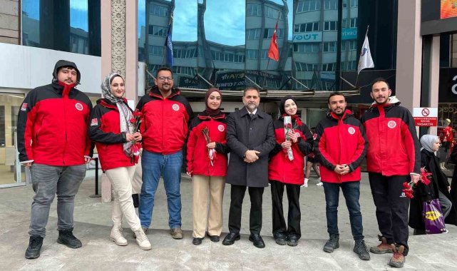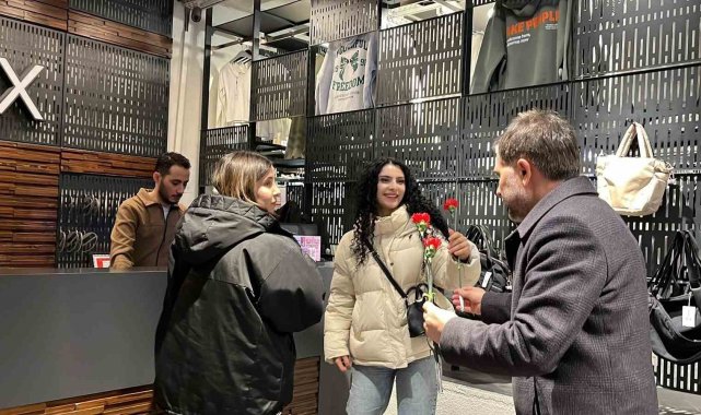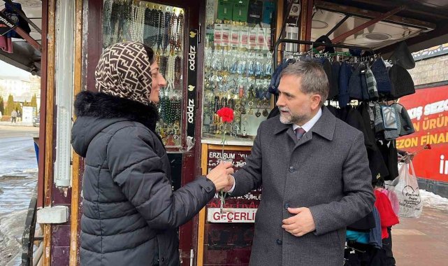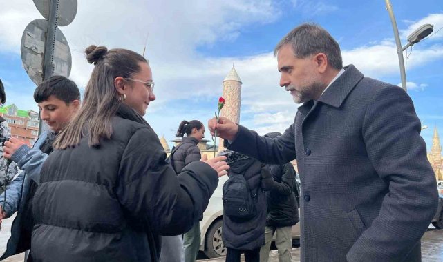 Yakutiye Belediye Başkanı Mahmut Uçar, Dünya Kadınlar Günü vesilesiyle, kent merkezinde kadınlara karanfil dağıttı.