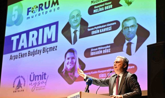 Antalya'da Muratpaşa Belediye Başkanı Ümit Uysal, "Tarım" başlığıyla gerçekleşen Forum Muratpaşa'da "Tarım aynı zamanda bir güvenlik sorunu, bir sosyal adalet sorunu, bir sosyolojik sorundur. Bir çevre duruşu, çevreyi koruma metodu, toprağı koruma metodudur. Dolayısıyla devletin babalığını göstereceği alandır" dedi.