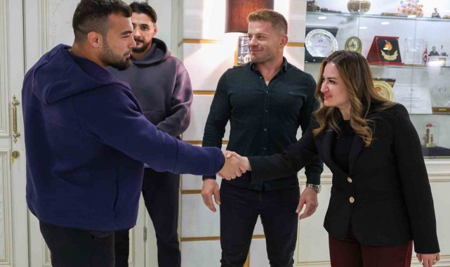 Antalya Büyükşehir Belediyesi Spor Kulübü Başkanı Utkan Hasan Eminoğlu, Baş Antrenör Ufuk Atalan ve başpehlivanlar 2026 Yağlı Pehlivan Güreş Sezonu öncesinde Antalya Büyükşehir Belediye Başkan Vekili Büşra Özdemir'i ziyaret etti. Pehlivanlara başarılar dileyen Başkan Vekili Özdemir, "Altın kemeri yeniden Antalya'mıza getireceğinize inanıyorum" dedi.