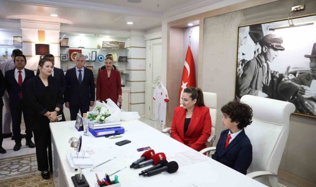 Türkiye Büyük Millet Meclisi'nin (TBMM) açılışının 106. yıl dönümü ve 23 Nisan Ulusal Egemenlik ve Çocuk Bayramı etkinlikleri kapsamında Antalya Büyükşehir Belediye Başkanlığı Hizmet Binası önünde bulunan Atatürk Anıtı'nda çelenk sunma töreni düzenlendi. Antalya Büyükşehir Belediye Başkan Vekili Büşra Özdemir, makamını devrettiği Çocuk Başkan Can Toprak Güven ile birlikte Atatürk Anıtı'na çelenk sundu. Çelenk sunma töreninin ardından Büyükşehir Belediye Başkanlığı makamında devir teslim töreni yapıldı. Büyükşehir Belediye Başkan Vekili Büşra Özdemir, koltuğunu Cengiz Topel İlkokulu 4. sınıf öğrencisi Can Toprak Güven'e devretti.