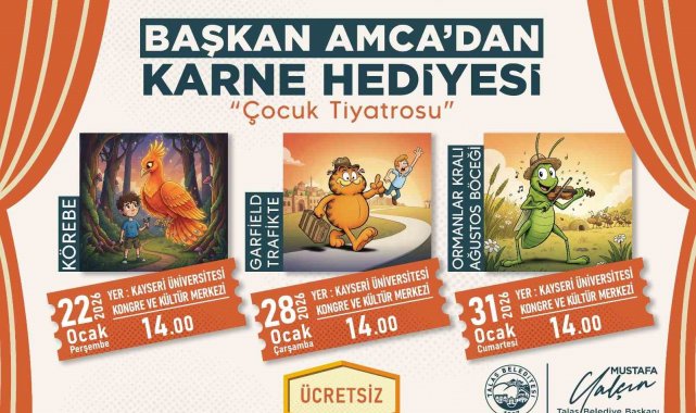 Talas Belediyesi; yarıyıl tatiline giren çocuklar için kültür ve sanat dolu bir karne hediyesi hazırladı. 'Başkan Amca'dan Karne Hediyesi-Çocuk Tiyatrosu' etkinliği kapsamında sevilen çocuk oyunları minik izleyicilerle ücretsiz olarak buluşacak.