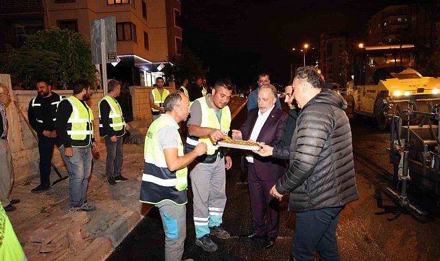 Gece boyunca süren sıcak asfalt uygulamasını teknik ekiplerle birlikte takip eden Başkan Yalçın, işçilerle sohbet edip baklava ikramında bulundu. Hizmetin en verimli ve en az trafik aksamasıyla yürütülmesi adına çalışmaların gece yapıldığını belirten Başkan Yalçın, "Vatandaşlarımızın konforlu bir ulaşım sağlaması için gece gündüz demeden sahadayız. Bizler için belediyecilik sadece gündüz mesaisiyle sınırlı değil. Hemşehrilerimizin rahatı her şeyden önemli" dedi.