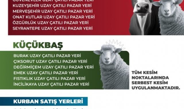 Büyükbaş kurban kesim yerleri olarak ise Gazikent 1 Pazar Yeri, Güvenevler Pazar Yeri, Merveşehir Pazar Yeri, Özgürlük Pazar Yeri, Seyrantepe Pazar Yeri, Basra Pazar Yeri, Beykent 1 Pazar Yeri, Beykent 2 Pazar Yeri, Kuzeyşehir Pazar Yeri belirlendi.