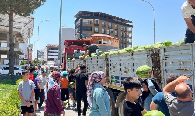 Osmaniye'nin Düziçi ilçesinde karpuz üreticisi çiftçiler tarlada kilosu 1-2 liraya düşen karpuzdan dolayı hayal kırıklığına uğradı. Düziçi ilçesinin Çiftlik Mahallesi'nde 100 dönüm alana karpuz ekimi yapan çiftçi Ersin Ala ürünün bereketli bol olmasından dolayı ürünü tarlada 3 TL'ye satışa çıkardı. Bunun üzerine harekete geçen Düziçi Belediye Başkanı Mustafa İba, hem çiftçinin mağdur olmaması için hem de vatandaşa sıcak yaz günlerinde serinleten bir ikram yapmak için tarlada bulunan 200 ton karpuzu alıp belediye binası önünde vatandaşa ücretsiz dağıttı.