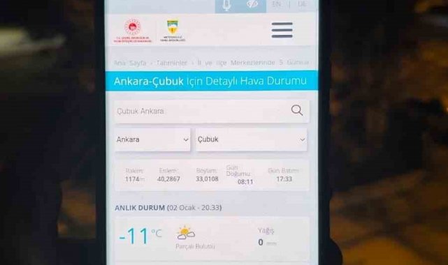Ankara'da gün boyu soğuk hava etkisini gösterdi. Ankara merkezde bugün termometreler eksi 11'i gördü. Ankara'nın Çevre ilçelerinde de soğuk hava etkisini gösterdi. Nallıhan'da termometreler eksi 18'i, Çamlıdere'de eksi 12'yi Çubuk'ta eksi 11'i, Haymana'da eksi 11'i, Beypazarı'nda eksi 10'u, Kahramankazan'da eksi 10'u, Kızılcahamam'da eksi 10'u Sincan'da eksi 9'u, Elmadağ'da eksi 8'i, Akyurt'ta ise eksi 8'i gösterdi. Meteoroloji Genel Müdürlüğü'nden yapılan hava tahminlerine göre soğuk hava birkaç gün daha başkentte etkisini gösterecek.